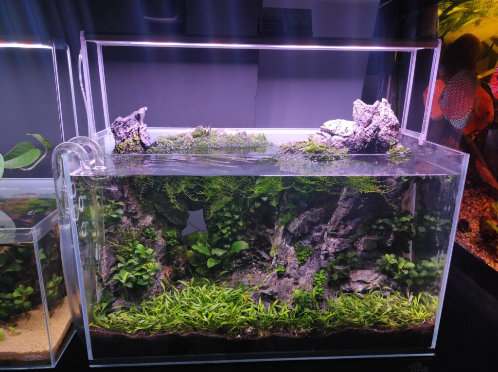 Rostliny v nádržích nabízely inspiraci pro amatérské chovatele, ale byly vidět i složitější, vyloženě technické realizace: husté amazonské kompozice, či naopak minimalistické krajinářské aquascapy s různými druhy mechů apod.