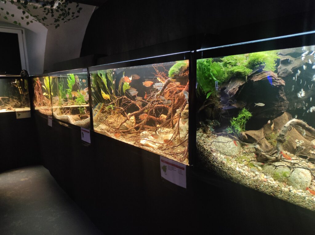 Místnosti a výstavní sály byly plné nádrží – od menších 20l akvárií až po mohutné biotopy s objemy kolem 1000 litrů. V těchto nádržích bylo vystaveno široké spektrum druhů vodních organismů – od běžnějších gupek a teter až po specializované chovy korýšů, endemických ryb či mořských organismů. Výstava byla plná exponátů od akvaristů a teraristů z našich akvaristických spolků, letos však byly zastoupeny dokonce i polské odchovy.