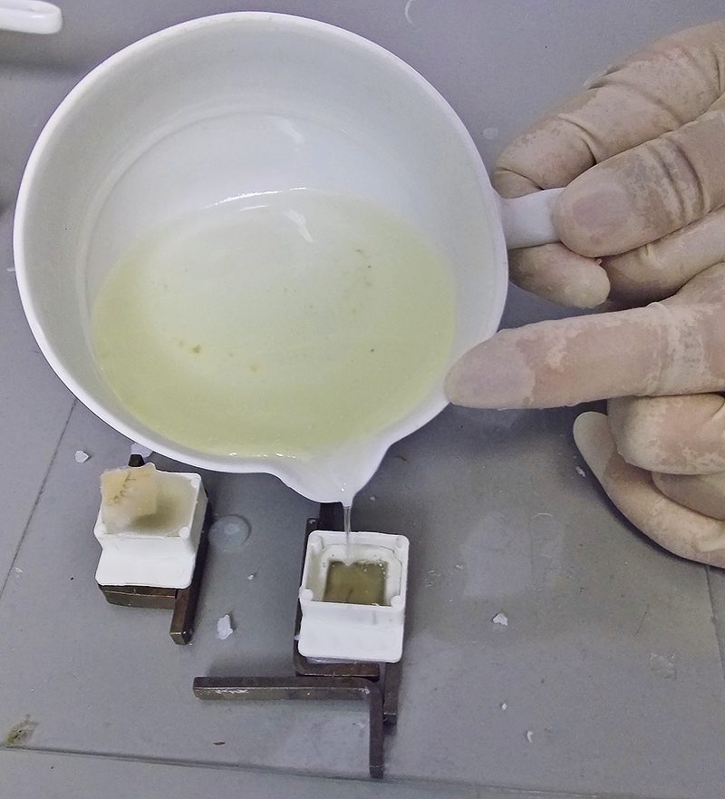 - 8. Zaliať do parafínu vo formičke (napr. papierovej) a nechať dôkladne stuhnúť pri izbovej teplote