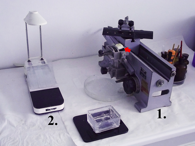 Jedným zo spôsobov je aj príprava rezu pomocou čerstvo zlomeného skla, podobne ako sa používa pri príprave ultratenkých rezov pre potreby elektrónovej mikroskopie.