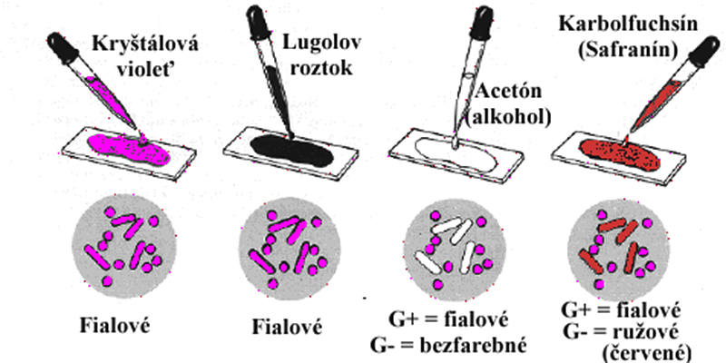 - Diferencovanie v diferenciačnom roztoku až sú rezy žltoružové. Prebytočný fuchsín musí byť odstránený z tkaniva, ale G- baktérie a jadrá ostanú ružové (kontrola pod mikroskopom).