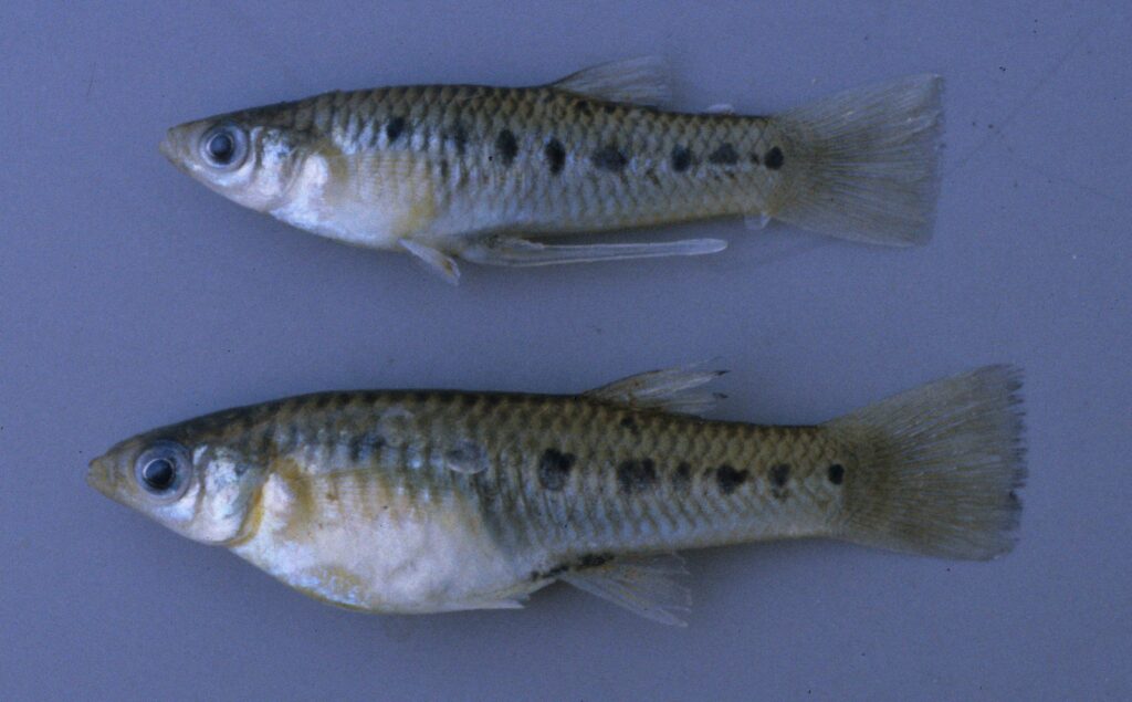 Heterandrie dvouskvrnná (Pseudoxiphophorus [=Heterandria] bimaculatus), pár.